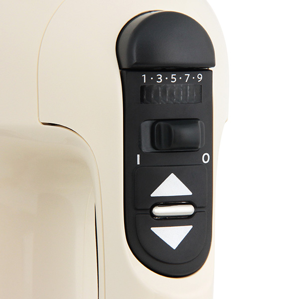 Миксер оснащён прорезиненной ручкой, за которую его очень удобно держать. Владелец может регулировать скорость так, как ему нужно - разработчики предусмотрели 9 скоростных режимов.