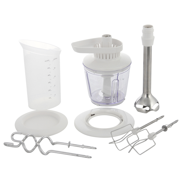 Пользуюсь этим агрегатом примерно 2 года почти ежедневно. Справляется с возлагаемыми на него обязанностями на ура! Он очень мощный, без труда перемешивает, замешивает, взбивает, имеет 5 скоростей. Есть 2 венчика для взбивания, которые прекрасно смешивают жидкие виды теста и взбивают ингредиенты. Имеются 2 спиралевидных насадки для замешивания теста. Раньше ими не пользовалась, а зря! Они вымешивают нужной густоты тесто в считанные минуты, освобождая от ручной работы. Насадкой-блендером практически не пользуюсь в силу отсутствия необходимости. Мини-измельчитель использовала пару раз и могу сказать, что измельчает он в лучшем случае половину заполненного объема. Обидно, но не критично, так как миксер покупался не ради этого аксессуара. Очень удобен мерный стакан объемом 600 мл, использую его при приготовлении всяческих блюд.