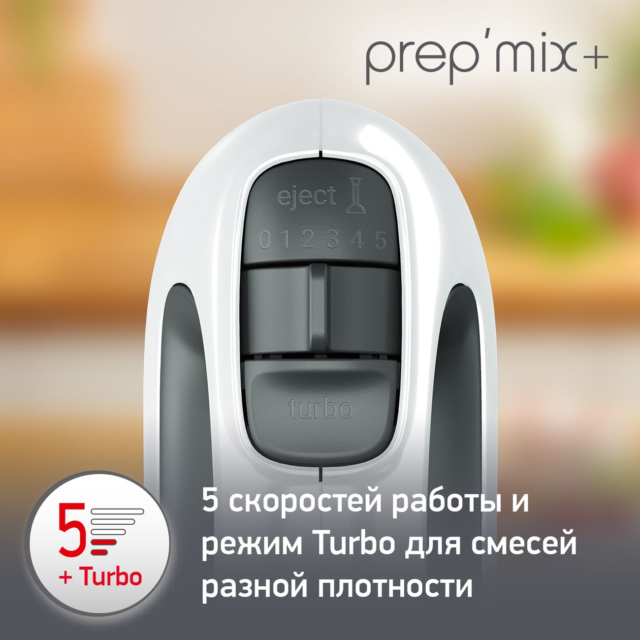 Миксер Moulinex Prepmix HM460110 бело-черного цвета с пятью скоростями идет в комплекте с четырьмя насадками (венчики и крюки). Присутствует турборежим. Прибор работает от сети. Длина шнура составляет 1,3 м. Габариты модели — 9х15х20,5 см. Вес изделия — 1,39 кг. Корпус сделан из легкого гигиеничного пластика. Насадки, изготовленные из стали с антикоррозийным покрытием, легко моются, отсоединяются с помощью специальной кнопки на корпусе. Нескользящая текстурированная ручка надежно лежит в ладони. Мощность — 0,5 кВт.