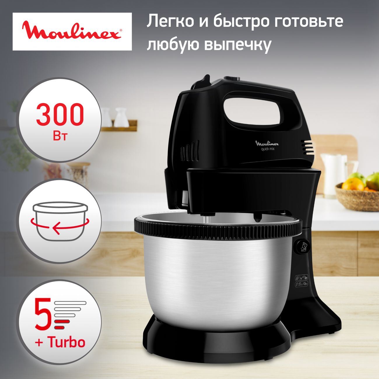 Любите домашнюю выпечку, но замешивание теста отнимает слишком много времени и сил? Миксер Moulinex QuickMix HM3128B1 вам поможет! Он оснащён 3,5-литровой чашей: вполне достаточно даже для большого пирога к семейному торжеству. Благодаря электроприводу ёмкость вращается, что обеспечивает максимально однородный результат: никаких комочков и остатков муки по краям.
