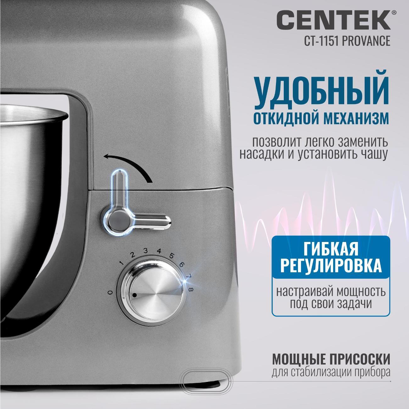 Вы можете купить Миксер планетарный Centek CT-1151 PROVANCE в магазинах М.Видео по доступной цене. Миксер планетарный Centek CT-1151 PROVANCE: подробное описание, фото и отзывы реальных покупателей, характеристики, возможность скачать инструкции и подобрать аксессуары.