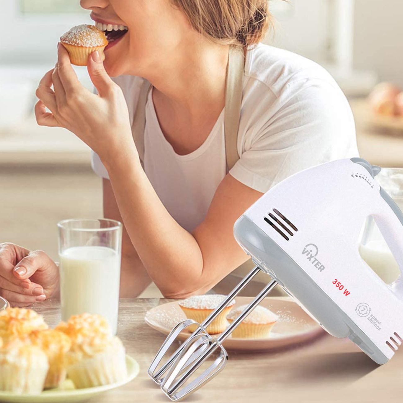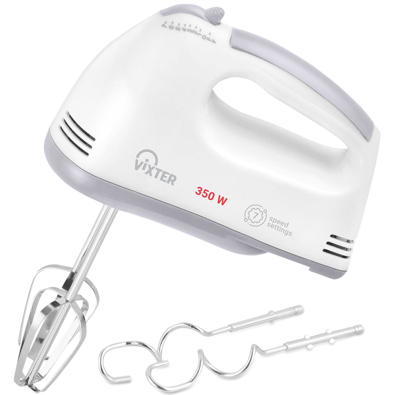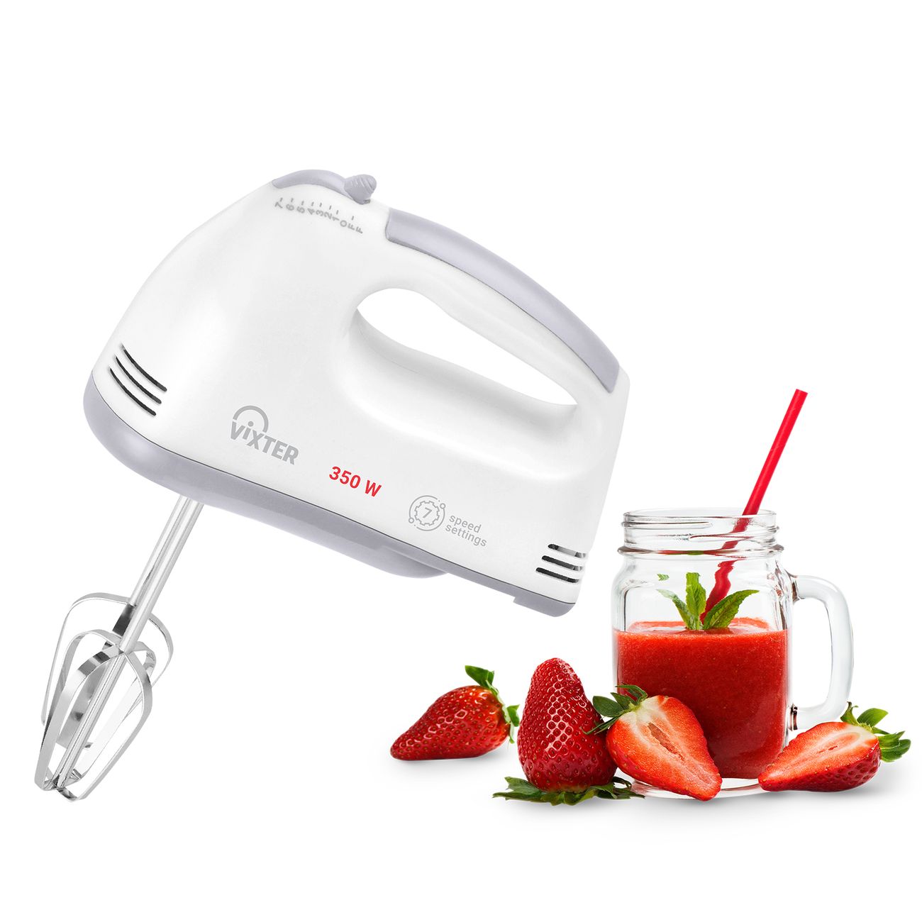 Vixter VHM-3220 – лёгкий и простой в использовании ручной миксер мощностью 200 Вт. В комплект включены две пары насадок. Венчики предназначены для быстрого взбивания сливок, яичных белков, молочных коктейлей, муссов, смешивания различных кремов и соусов, крюки – для вымешивания густого и плотного теста. Кроме того, вы получите набор мерных ложек, которые помогут точно следовать рецепту.