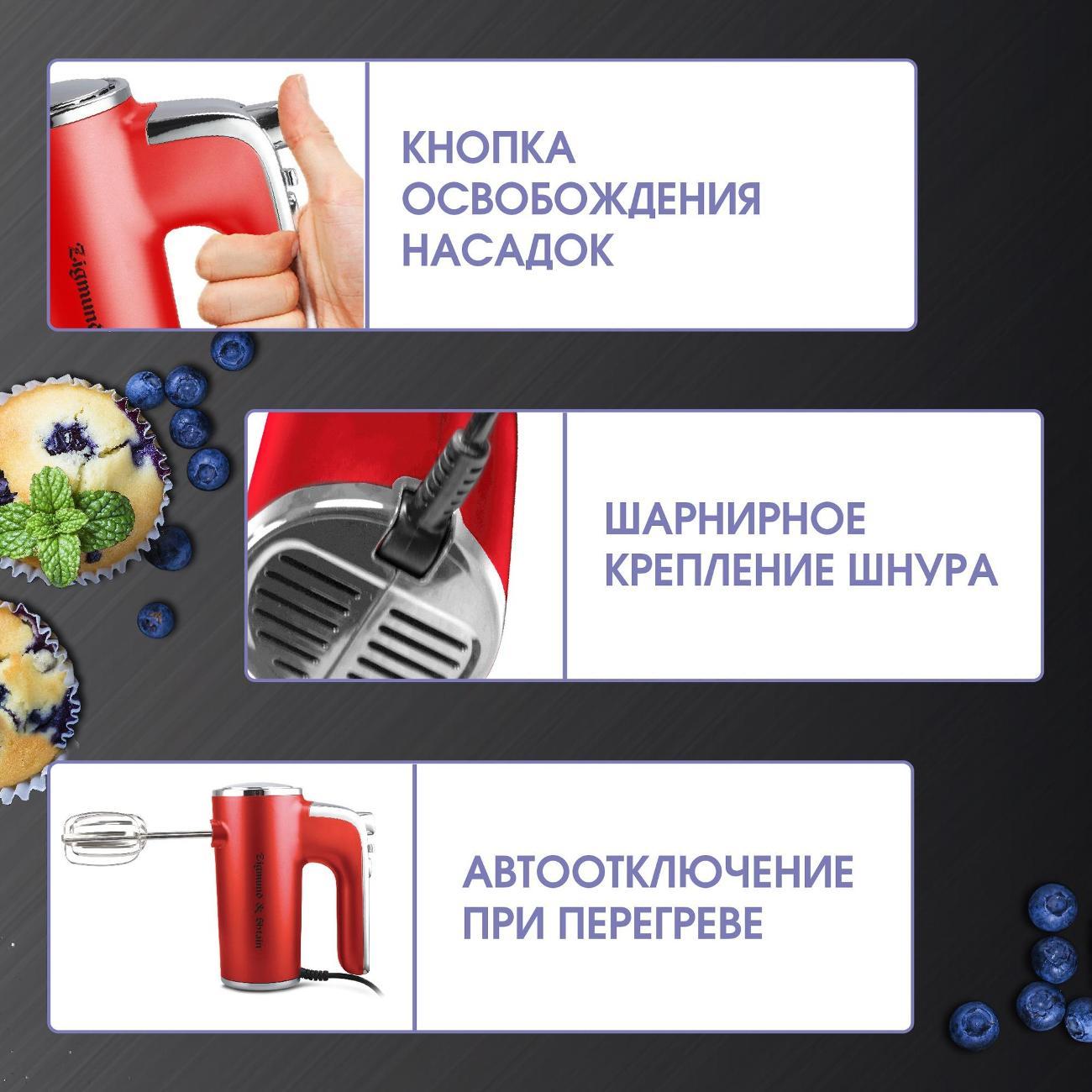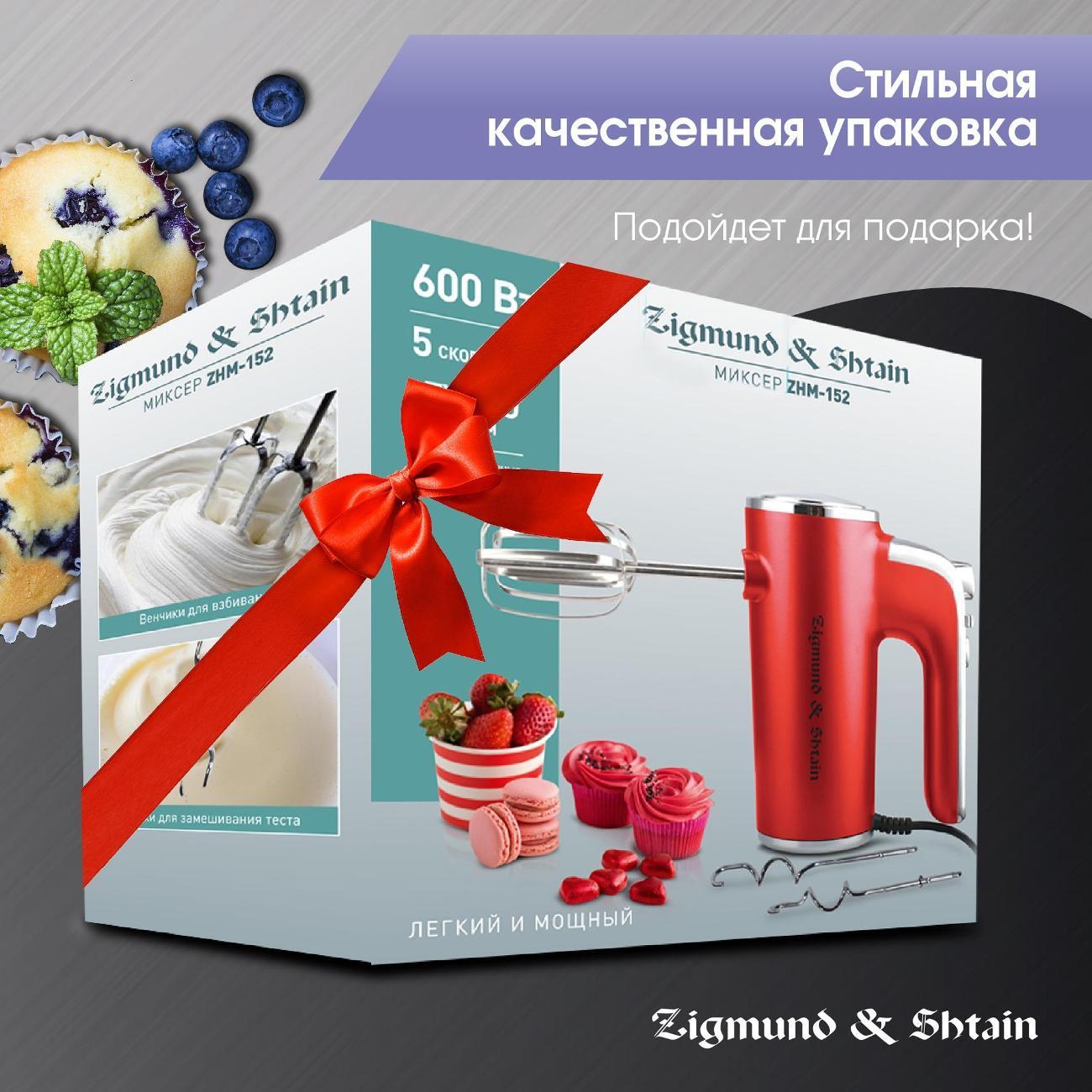 Миксер Zigmund & Shtain ZHM-152 — модель ручного типа в пластиковом корпусе с удобной эргономичной ручкой, которая обеспечивает надежный хват. Устройство поддерживает пять скоростей, включая турборежим, которые можно регулировать посредством механических кнопок.