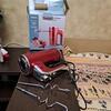 Номинальная мощность составляет 600 Вт. Длина сетевого кабеля с шарнирным креплением равна 1,15 м. В комплект входят четыре насадки, произведенные из нержавеющей стали, в том числе венчик, крюк для теста, которые можно освобождать посредством нажатия кнопки. Габаритные размеры миксера — 1х15,5х18,8 см, вес — 1 кг.