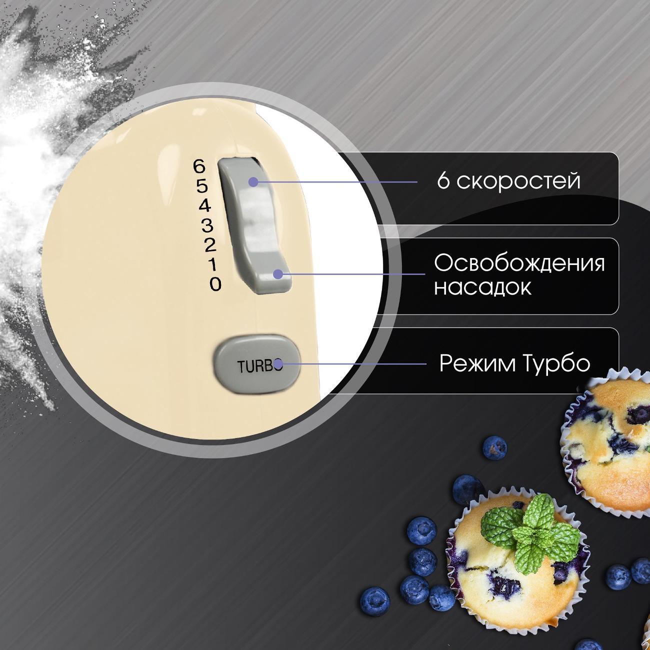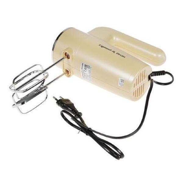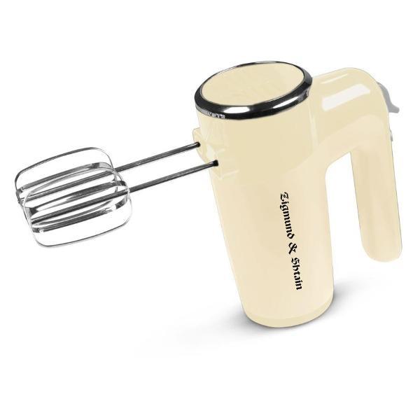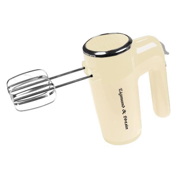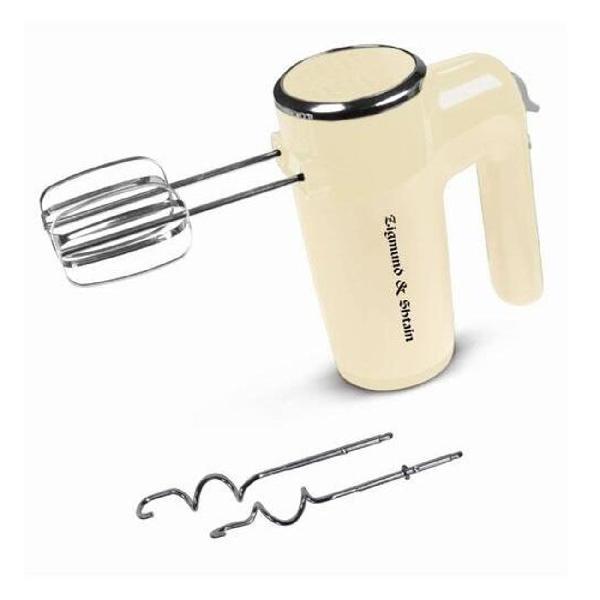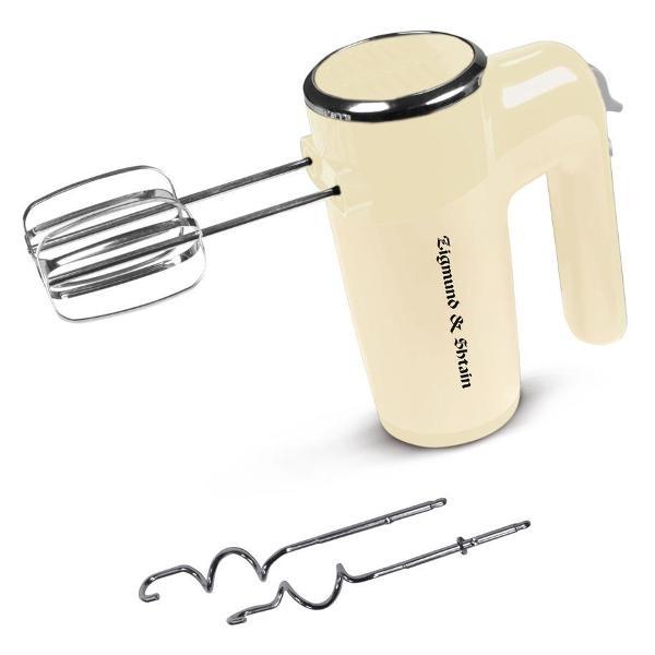 Миксер Zigmund & Shtain ZHM-150 работает в шести скоростях, корректировка которых проводится при помощи переключателя с цифровой маркировкой, в турборежиме. В наборе поставляются четыре насадки из нержавеющей стали с хромированным покрытием — венчики и крюки для взбивания или перемешивания теста. При возникновении угрозы перегрева модель выключается автоматически. Максимальная расходуемая мощность — 600 Вт.