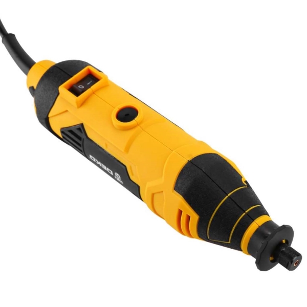 Мини-дрель-гравер Deko DKRT200E предназначена для профессионального или домашнего использования. С ее помощью шлифуют, обрабатывают и полируют заготовки и изделия небольших габаритов из древесины, металла, других материалов. Можно регулировать обороты работы устройства, менять оснастку, не отключая его от сети, в зависимости от конкретной ситуации.