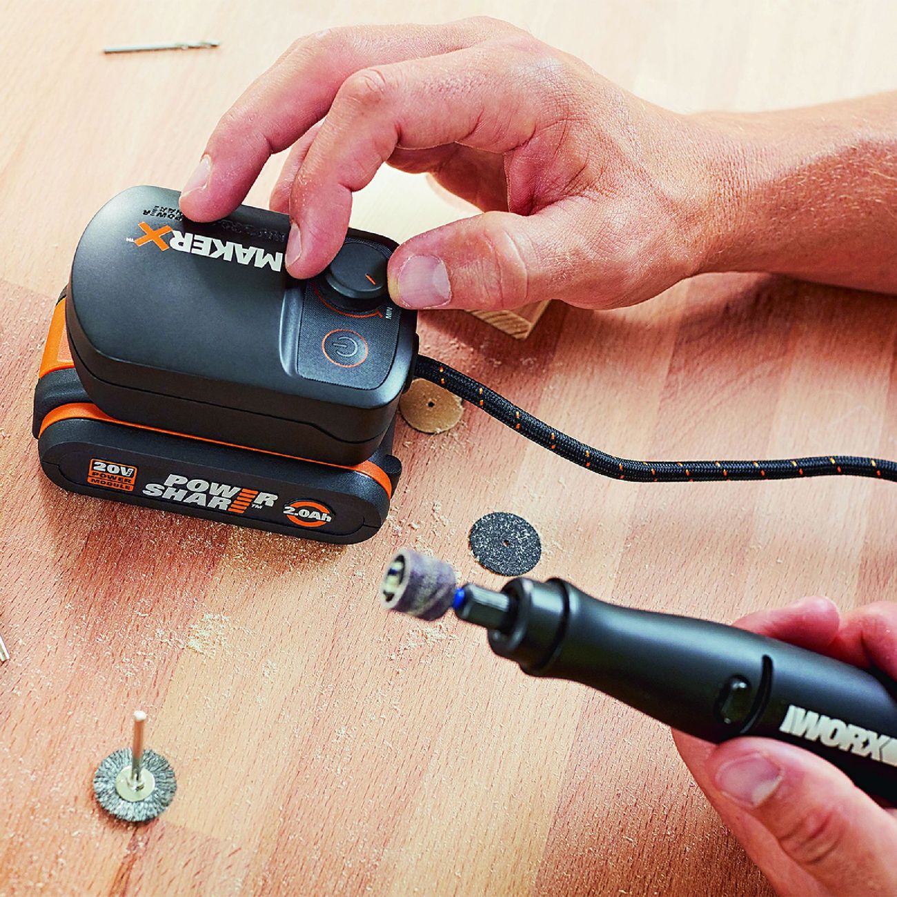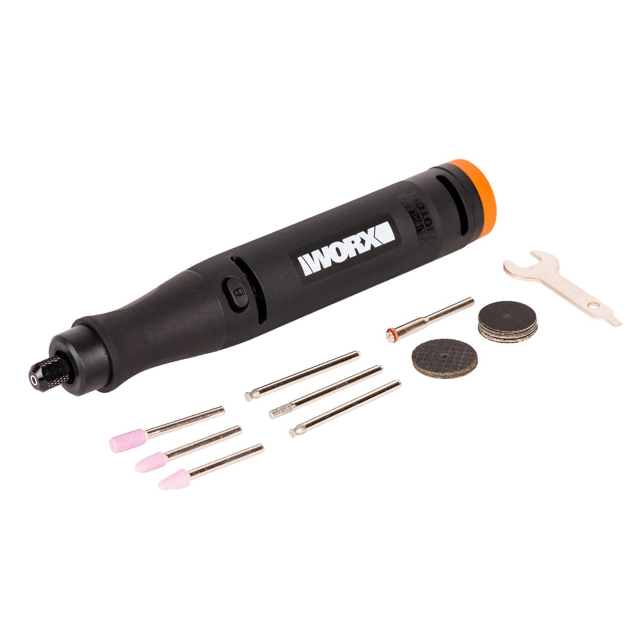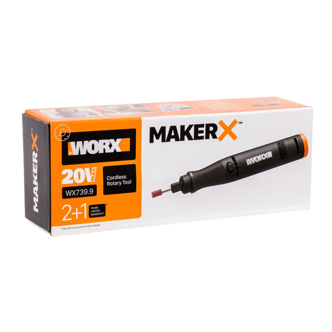 Дрель Worx WX739.9 оснащена 3,2-миллиметровой цангой. Бесщеточный двигатель работает с максимальной скоростью 35 000 оборотов в минуту, предусмотрена электронная регулировка числа оборотов. Благодаря прорезиненной рукоятке инструмент не скользит в ладони.