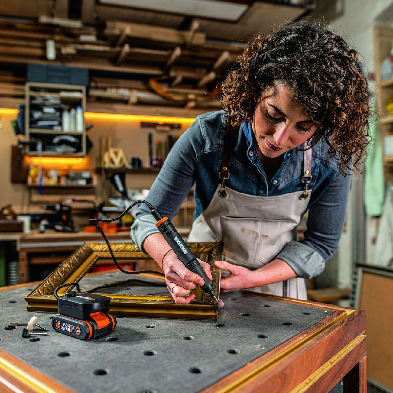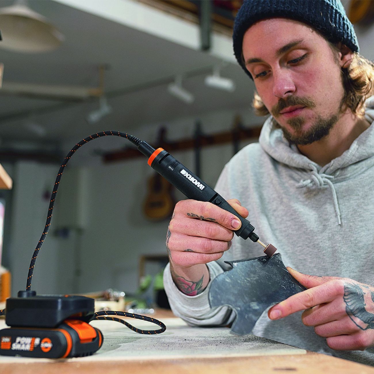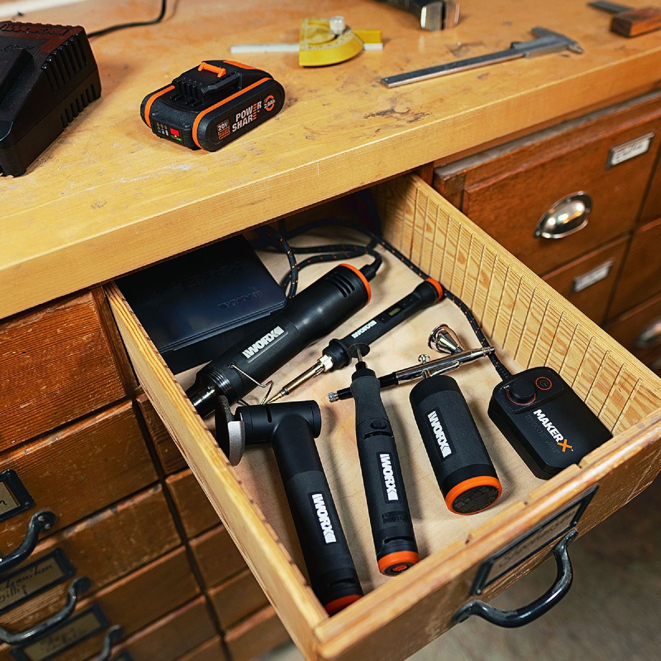 Дрель Worx WX739.9 оснащена 3,2-миллиметровой цангой. Бесщеточный двигатель работает с максимальной скоростью 35 000 оборотов в минуту, предусмотрена электронная регулировка числа оборотов. Благодаря прорезиненной рукоятке инструмент не скользит в ладони.
