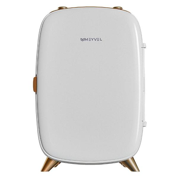Мини-холодильник для косметики Meyvel MB-06C1W вмещает в себя до 12-14 предметов. Общий объем устройства равен 6 л. Модель оснащена электронным управлением. Присутствует индикация режима работы. Изделие снабжено активным типом охлаждения. Характеризуется максимальным уровнем шума 30 дБ. Корпус прибора сделан из пластика, дверца открывается на правую сторону. Конструкция оборудована ручкой для переноски и сетевым шнуром длиной 3 м. Питание техники производится от сети 220 В. Габариты: 35,6х24,3х19,4 см. Вес — 1,75 кг.
