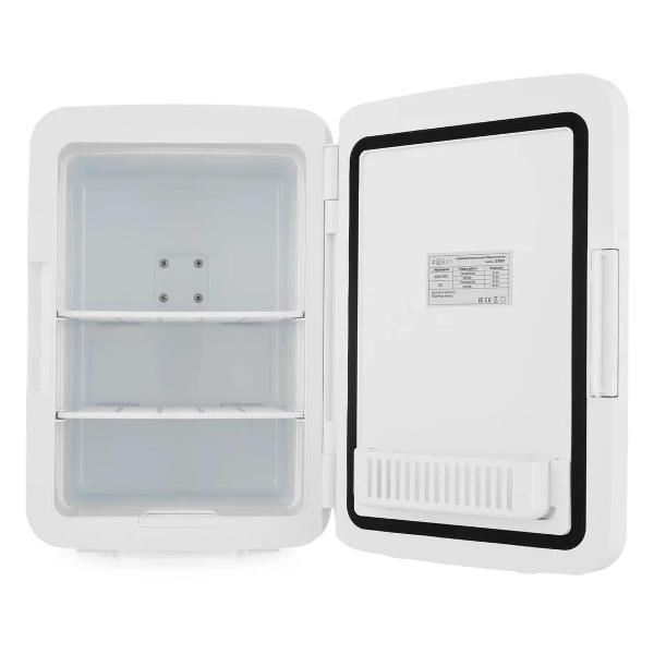 В комплекте идет кабель питания обычный, и кабель автомобильный, который работает от прикуривателя, так что проблемы нет взять с собой в дорогу. Внутри две полки, и объем 10л., идеально подходит для путешествий и для хранения дома косметики и лекарств.