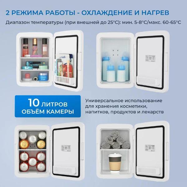 Давно уже задумывалась о приобретении холодильника для косметики, потому что знаю, что она обладает лучшим эффектом, если наносить маски и кремы охлажденными, а летом это возможно только если хранить ее в холодильнике. Этот взяла из-за приличного объема, сначала хотела взять на 6 литров, но подумала что будет маловат и взяла на 10. Не ошиблась, как раз оптимальный для меня объем, поместила все что нужно. Внешне выглядит очень стильно, размеры компактные, но объем очень вместительный. Работает очень тихо, практически не слышно его и поддерживает оптимальную для косметики температуру, в районе примерно 10 градусов. Можно использовать его и для нагрева, температура нагрева максимальная может достигать 65 градусов. Но меня такая функция не интересует, я ей еще не пользовалась. А вот насчет охлаждения тут никаких претензий нет. Можно брать с собой в дорогу, холодильник может работать как от прикуривателя, так и от обычной сети. Очень удобная складная ручка, для транспортировки то что нужно. В дороге тоже уже опробовала, никаких претензий нет, работает также хорошо, как и от сети. Цена отличная для такого качественного гаджета.