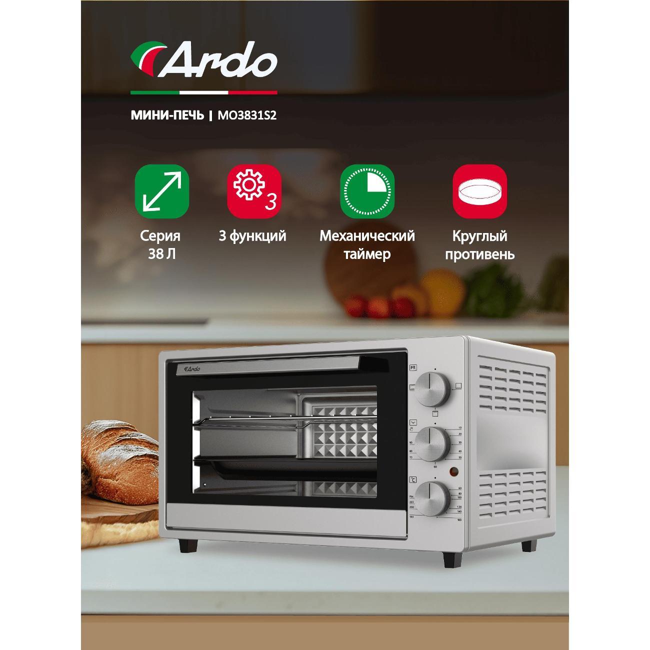 Вы можете купить Мини-печь Ardo MO3831S2 в магазинах М.Видео по доступной цене. Мини-печь Ardo MO3831S2: подробное описание, фото и отзывы реальных покупателей, характеристики, возможность скачать инструкции и подобрать аксессуары.