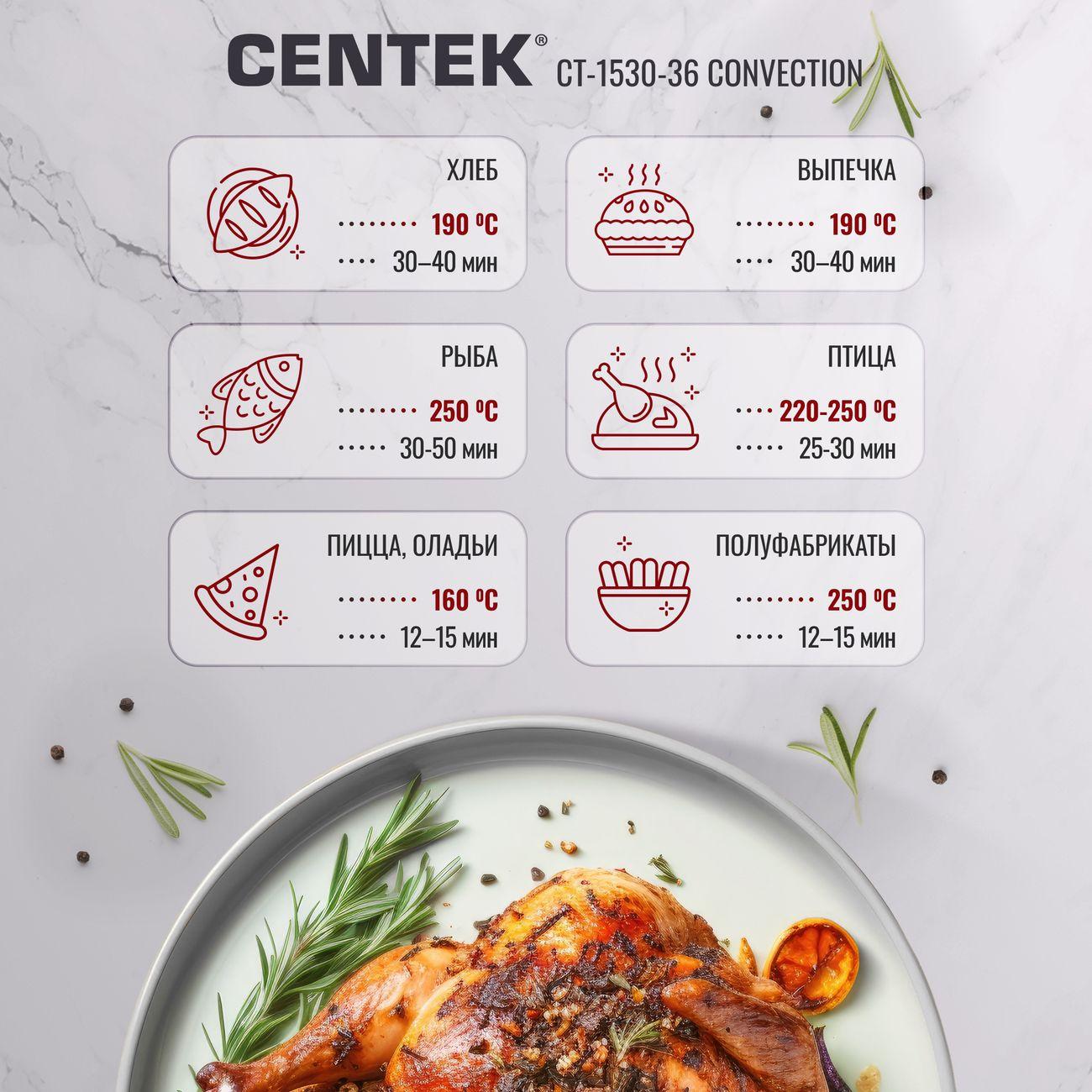 Вы можете купить Мини-печь Centek CT-1530-36 Convection в магазинах М.Видео по доступной цене. Мини-печь Centek CT-1530-36 Convection: подробное описание, фото и отзывы реальных покупателей, характеристики, возможность скачать инструкции и подобрать аксессуары.
