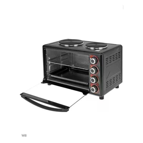 Представьте, как удобно готовить любимые блюда даже на маленькой кухне или на даче, где нет встроенной духовки. Духовой шкаф электрический прекрасно справляется с выпечкой и приготовлением основных блюд. Жарочный шкаф станет идеальным решением для дачи или небольшой квартиры. Настольный духовой шкаф отличается удобными размерами и простым управлением. Centek предлагает многофункциональный настольный духовой шкаф, который станет незаменимым помощником на любой кухне. Несколько режимов нагрева и таймер позволяют готовить разнообразные блюда. Устройство собрало множество положительных отзывов пользователей Жарочный шкаф Centek CT-1530-36 Plate станет незаменимым помощником на вашей кухне, и вы сможете радовать членов семьи вкуснейшими блюдами каждый день. Модель идеально подойдет для небольшой кухонной зоны, габариты которой не позволяют обустроить ее громоздким кухонным оборудованием. Устройство заключило в свой элегантный черный корпус с хромированными поворотными переключателями функционал духового шкафа и электрической плиты. На выбор пользователя предоставляется 4 режима работы. Температура приготовления может регулироваться в пределах диапазона от 100 до 320 °С. Плавный поворотный таймер на 90 минут с автоотключением и функцией непрерывной работы. Термоизолированный корпус позволит стенкам прибора оставаться холодными в процессе работы Технические характеристики: Мощность - 3200 Вт. Кол-во режимов - 4. Особенности - LED-индикаторы работы, Звуковой сигнал готовности. Гарантия - 1 год. Объем - 36 л. Быстрый нагрев - от 100 до 320 °С. Таймер - 90 мин. Диаметр - 2 чугунные плиты (18, 5+15, 5 см). Комплект аксессуаров - Жарочная решетка, Крюк для вынимания противня, Эмалированный противень. Габариты наруж. (ШхГхВ), мм - 518х310(без ручки)/380(с ручкой)х330. Габариты внутри камеры (ШхГхВ), мм - 375х310х270. Высота между нагрев. элементами, мм - 215.