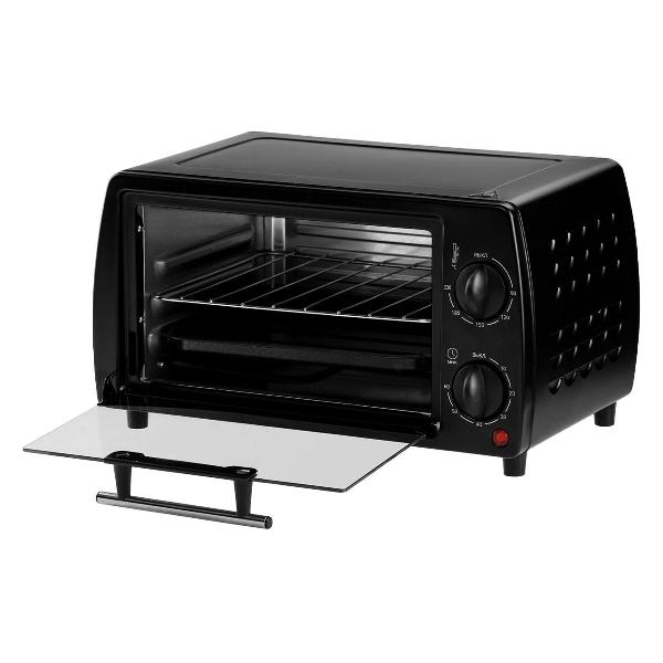 Мини-печь подключается к обычной розетке, длина кабеля — 90 см. Предусмотрена защита от перегрева. Дверца выполнена из термостойкого стекла, которому не страшен нагрев до 300°C. В комплект входят алюминиевый противень и решетка. Прорезиненные ножки обеспечивают устойчивость, предотвращают скольжение печи.