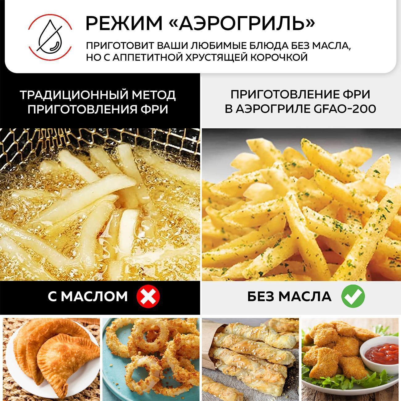 Вы можете купить Мини-печь GFGRIL GFAO-200 в магазинах М.Видео по доступной цене. Мини-печь GFGRIL GFAO-200: подробное описание, фото и отзывы реальных покупателей, характеристики, возможность скачать инструкции и подобрать аксессуары.