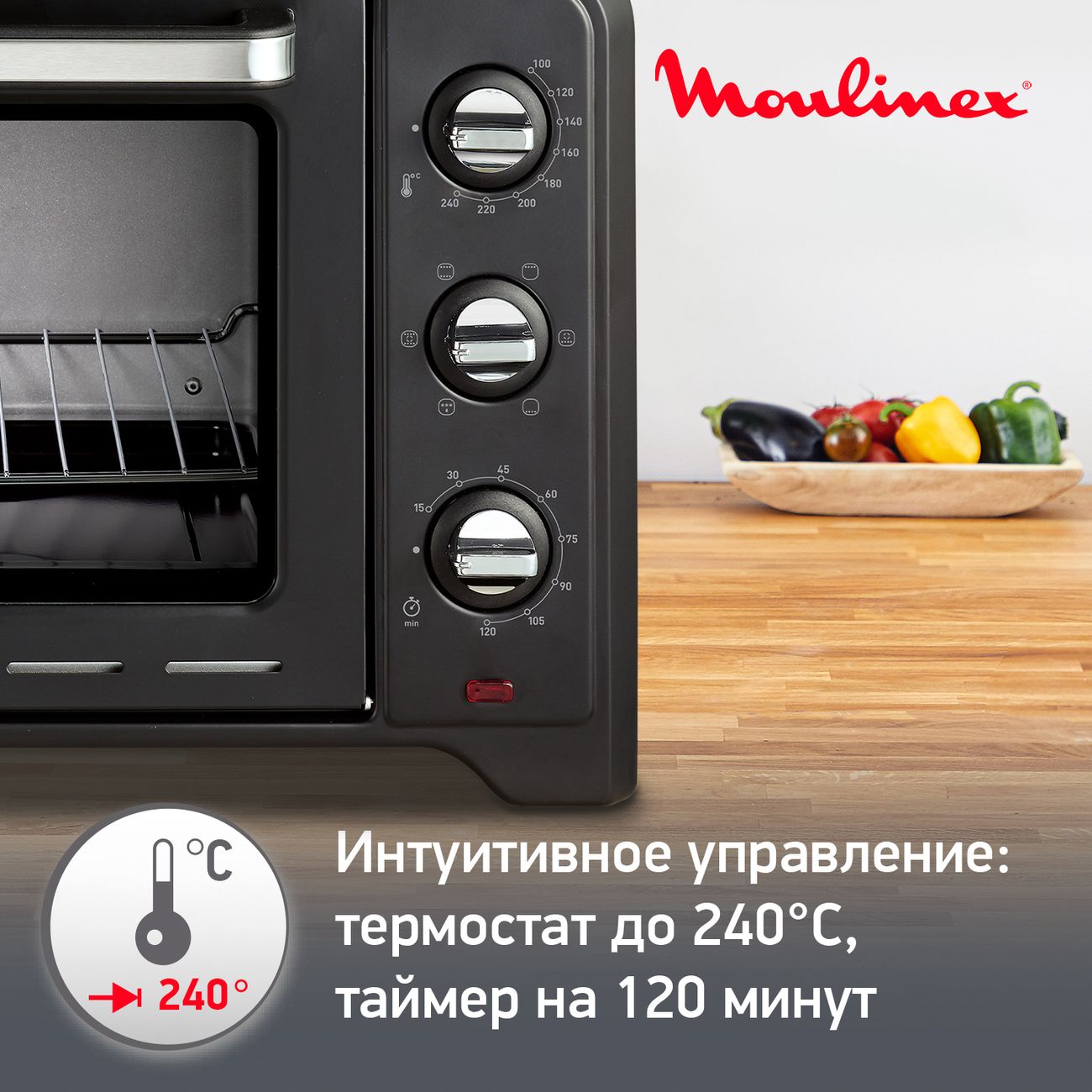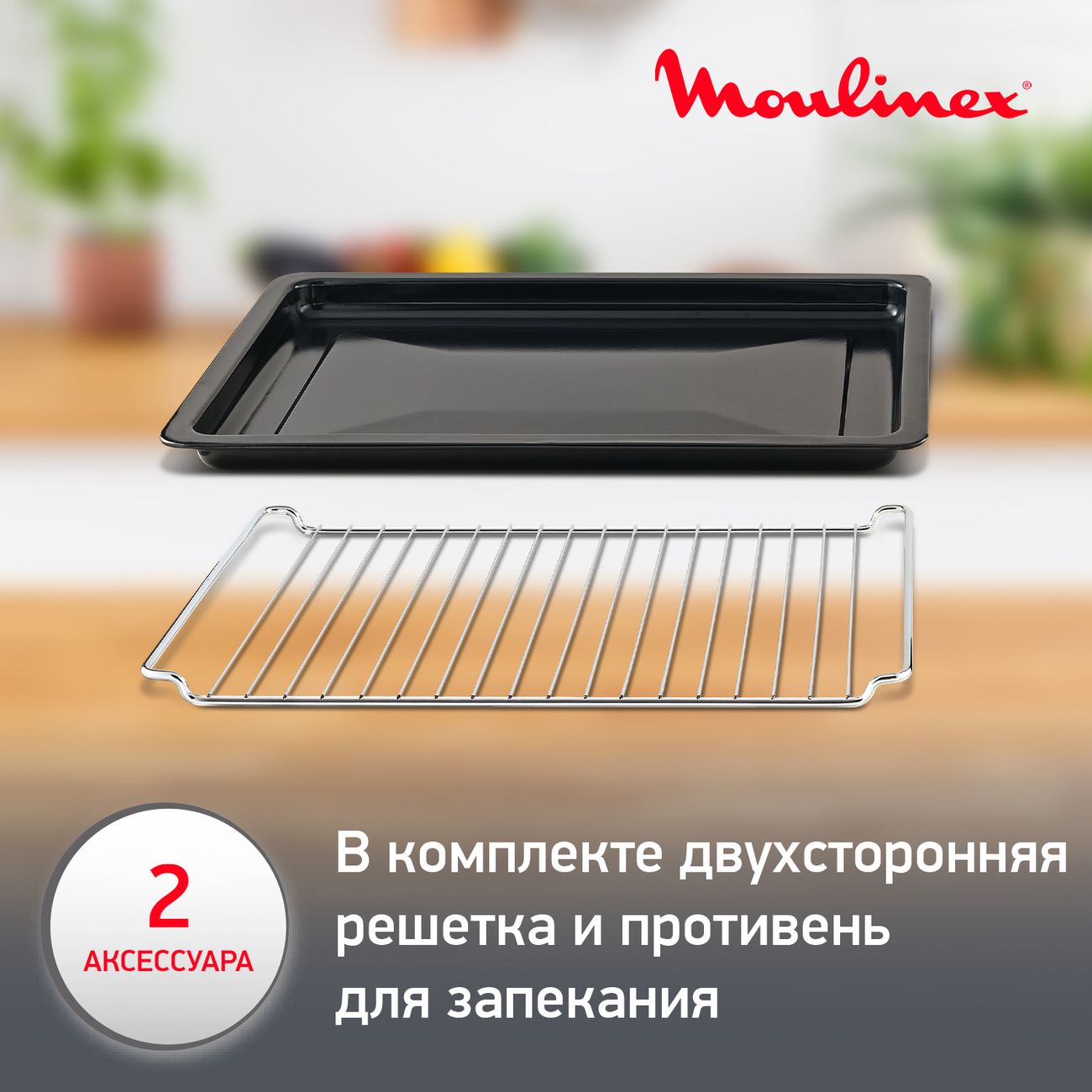 Мини-печь Moulinex Optimo OX464810 – вместительная модель, которая подходит для приготовления мучной выпечки, мяса, овощей и множества других блюд.