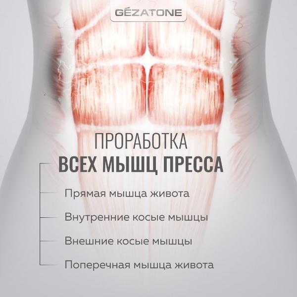 Миостимулятор для пресса Biolift4 M13 ABS от Gezatone создан для укрепления мышц, формирования рельефного живота и снижения жировых отложений без физических нагрузок. Устройство применяет EMS-технологию, вызывая сокращения мышечных волокон аналогично тренировке на спортивном тренажере. В процессе работы задействуются прямые, косые и поперечные мышцы пресса, повышается тонус кожи, уменьшаются отеки и жировая прослойка.