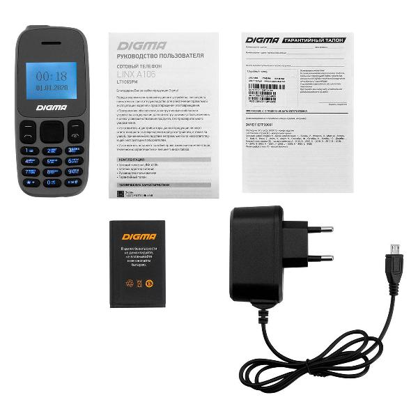 Мобильный телефон Digma Linx A106 32Mb, серый с поддержкой 2G и модуля Bluetooth 2.1 оснащен процессором Spreadtrum SC6500ES. Оперативная память составляет 32 Мб, встроенная — 64 Мб.