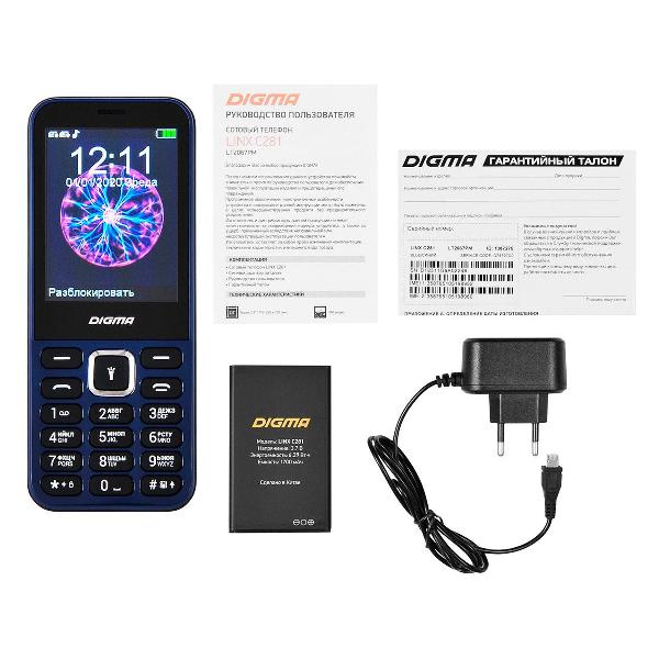 Мобильный телефон Digma Linx C281, синий со встроенным фонариком, диктофоном и вибровызовом снабжен встроенным Li-ion-аккумулятором емкостью 1700 мА*ч. У модели процессор Spreadtrum SC6531E со встроенной памятью 32 Мб и оперативной памятью 32 Мб.