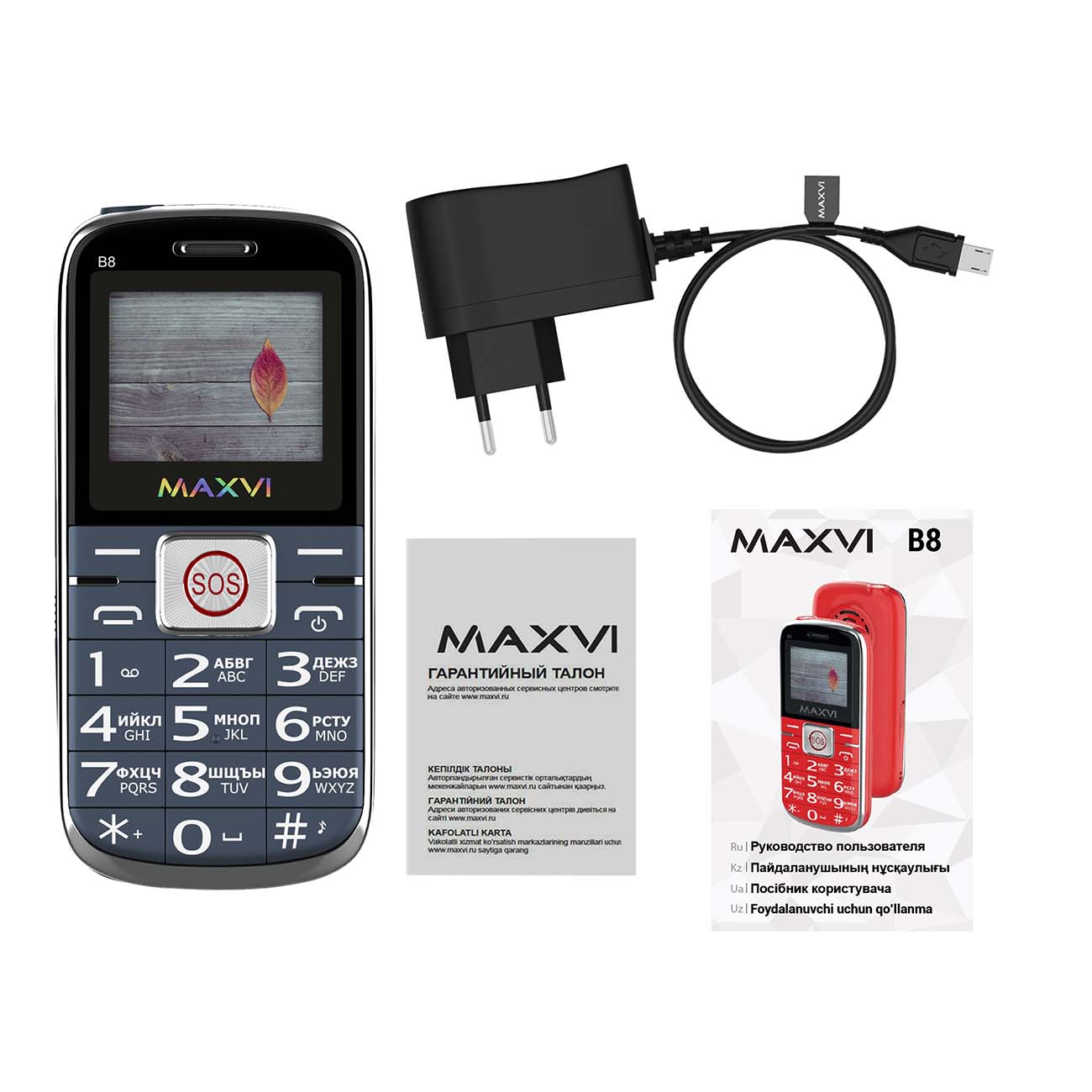 Мобильный телефон Maxvi B8 оснащён большими кнопками, позволяющими безошибочно набирать номер на ощупь. Нажав клавишу SOS, вы мгновенно отправите сообщение с просьбой о помощи заранее выбранным абонентам.