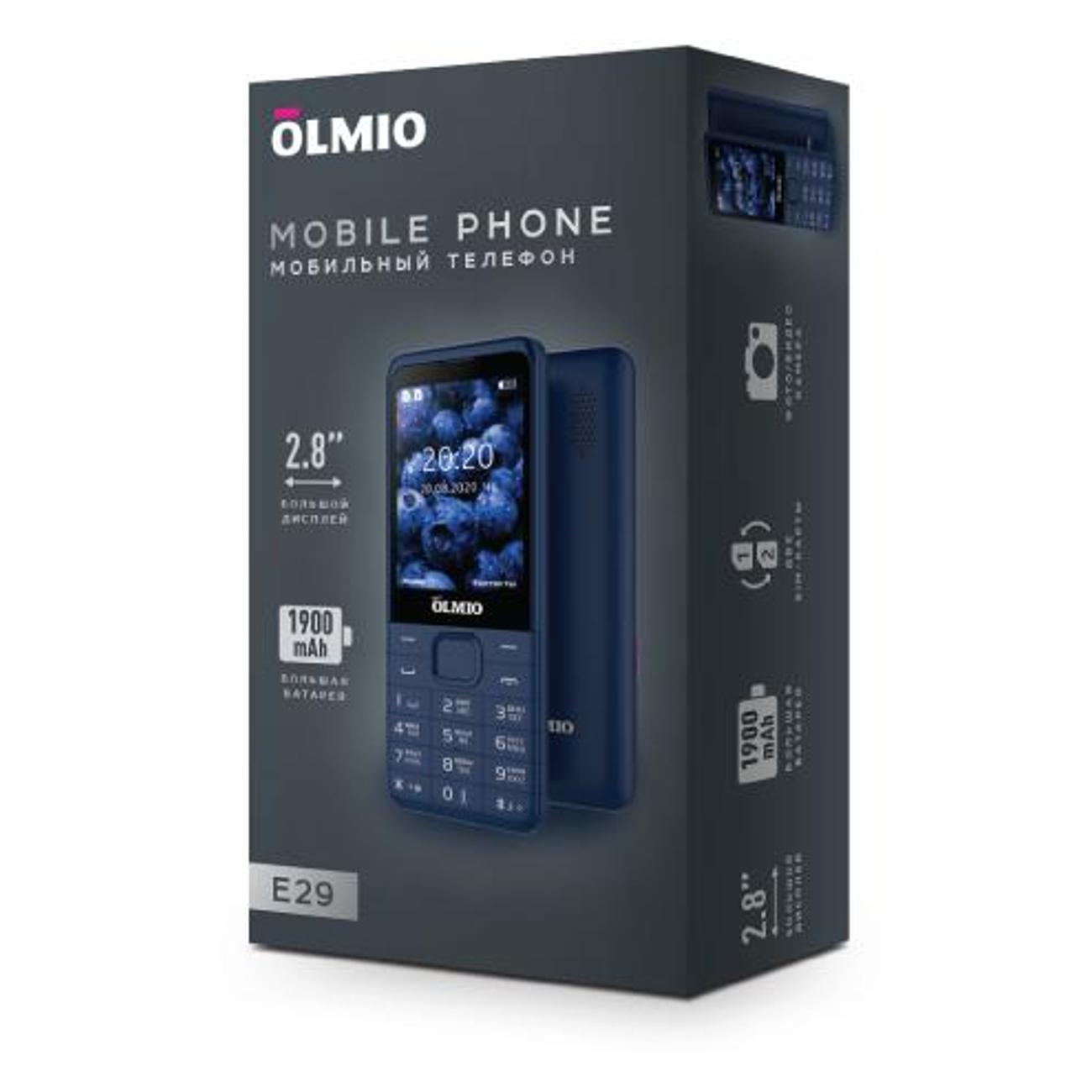 Вы можете купить Мобильный телефон Olmio E29 синий в магазинах М.Видео по доступной цене. Мобильный телефон Olmio E29 синий: подробное описание, фото и отзывы реальных покупателей, характеристики, возможность скачать инструкции и подобрать аксессуары.