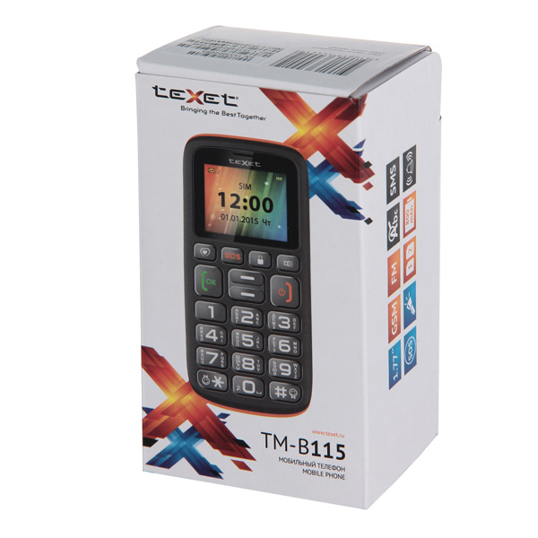 При всей своей простоте телефон ТМ-В115 позволяет не только быстро и комфортно осуществлять звонки - в нем также есть калькулятор, светодиодный фонарик, аудиоплеер, будильник и радио с выдвижной антенной.