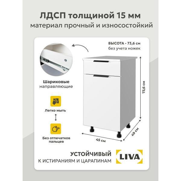 Размеры напольного модуля для кухни: ширина - 45 см, глубина – 49 см, высота – 73,6 см.