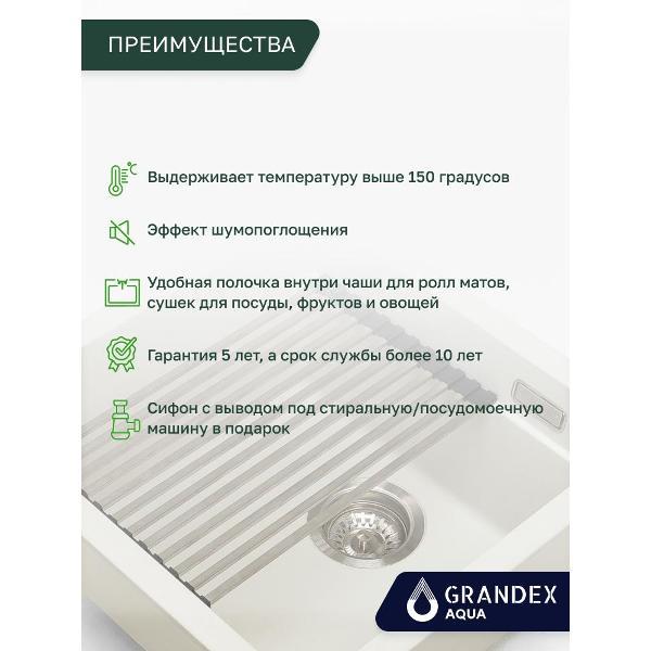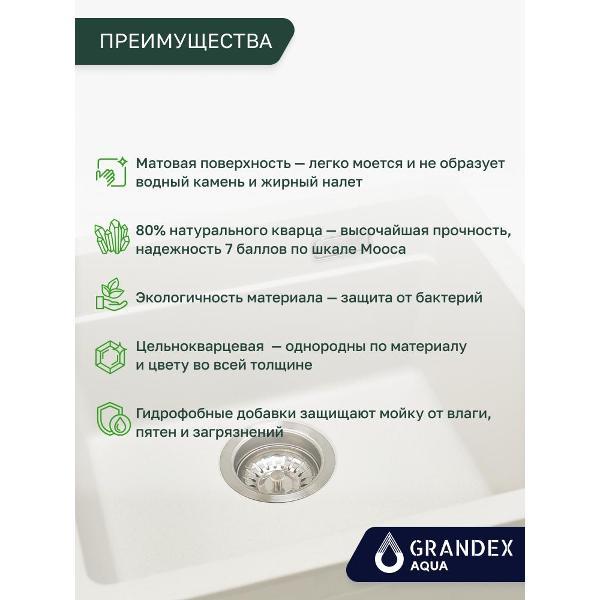 Вы можете купить Мойка кухонная GRANDEX AQUA COMFORT 46U Wh в магазинах М.Видео по доступной цене. Мойка кухонная GRANDEX AQUA COMFORT 46U Wh: подробное описание, фото и отзывы реальных покупателей, характеристики, возможность скачать инструкции и подобрать аксессуары.