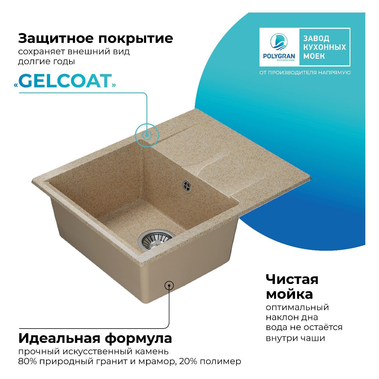 Вы можете купить Мойка кухонная POLYGRAN GALS-620 (№302 Песочная) в магазинах М.Видео по доступной цене. Мойка кухонная POLYGRAN GALS-620 (№302 Песочная): подробное описание, фото и отзывы реальных покупателей, характеристики, возможность скачать инструкции и подобрать аксессуары.