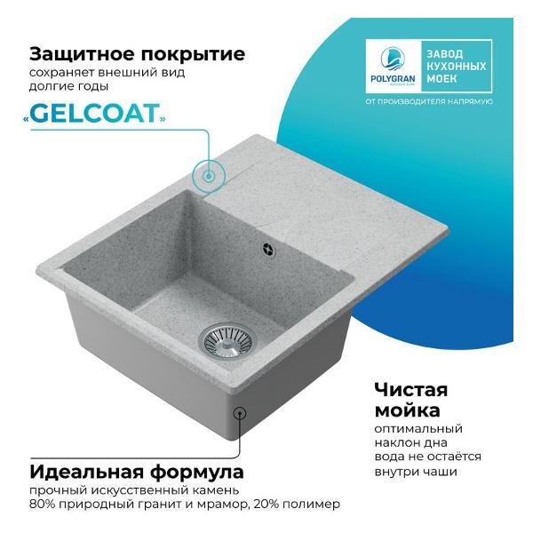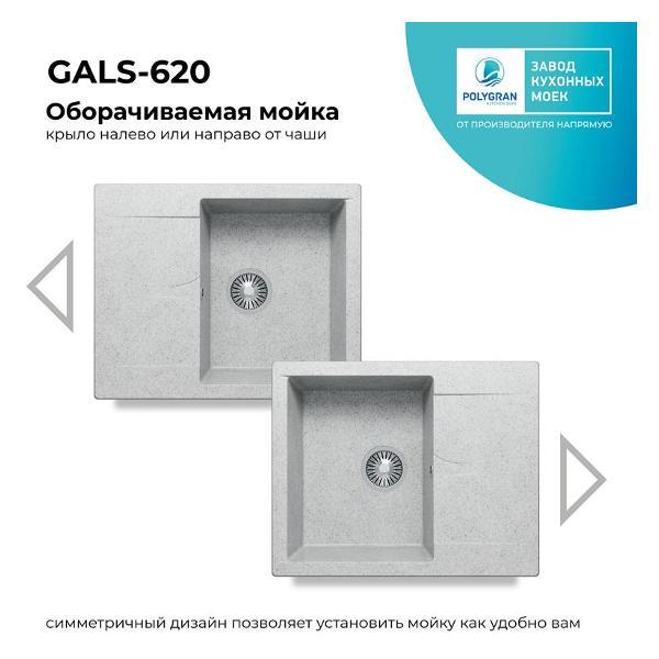 Вы можете купить Мойка кухонная POLYGRAN GALS-620 (№314 Светло-серая) в магазинах М.Видео по доступной цене. Мойка кухонная POLYGRAN GALS-620 (№314 Светло-серая): подробное описание, фото и отзывы реальных покупателей, характеристики, возможность скачать инструкции и подобрать аксессуары.