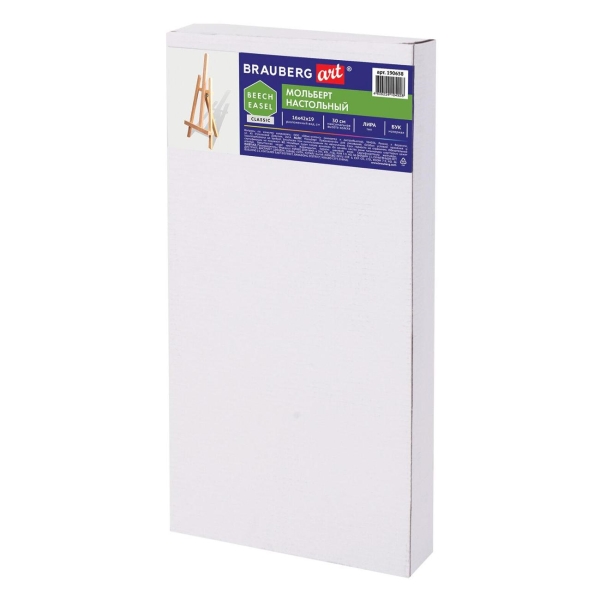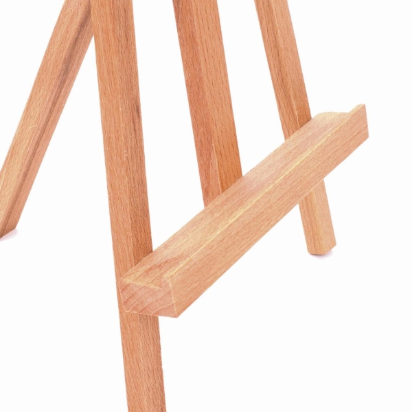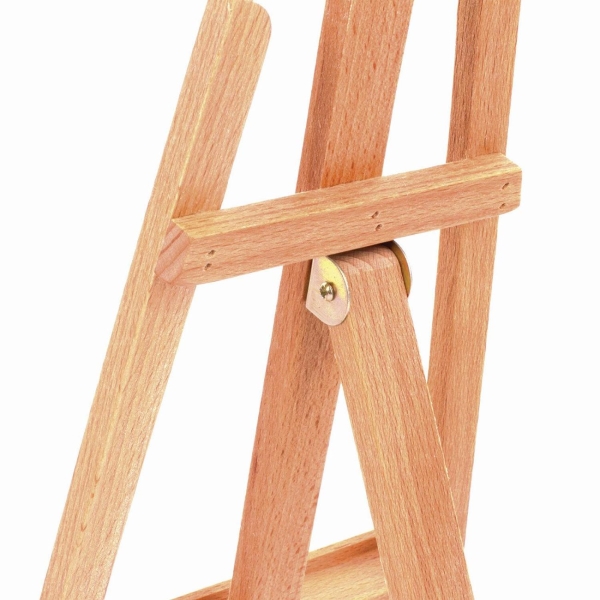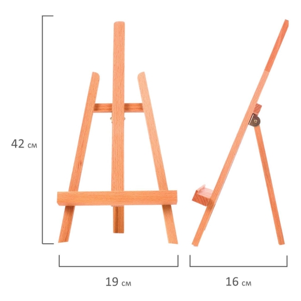 Изготовлен из натурального бука, пропитанного маслом. Мольберт настольный прост в установке. Максимальная высота размещаемого холста – 30 см. Мачта неподвижная с фиксированным углом наклона.