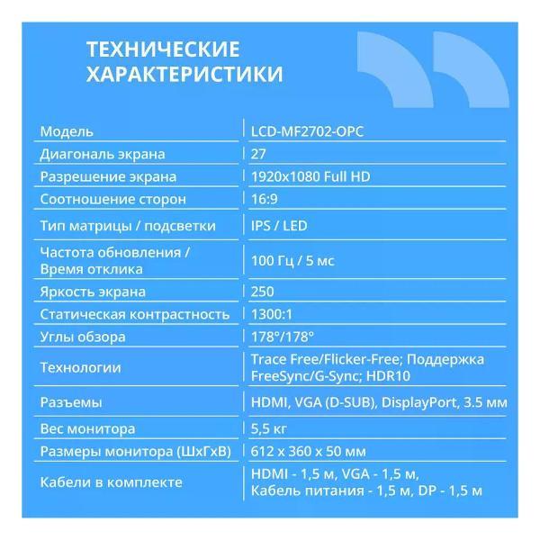 Вы можете купить Монитор Cbr LCD - MF2702 - OPC в магазинах М.Видео по доступной цене. Монитор Cbr LCD - MF2702 - OPC: подробное описание, фото и отзывы реальных покупателей, характеристики, возможность скачать инструкции и подобрать аксессуары.