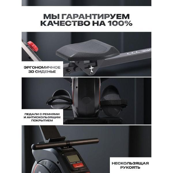Регулируемое эргономичное сиденье и настраиваемые упоры для ног позволяют адаптировать роуер под параметры конкретного человека. Антискользящее покрытие педалей и рукояти в сочетании с фиксирующими ремнями обеспечивают правильную технику и комфортный хват.