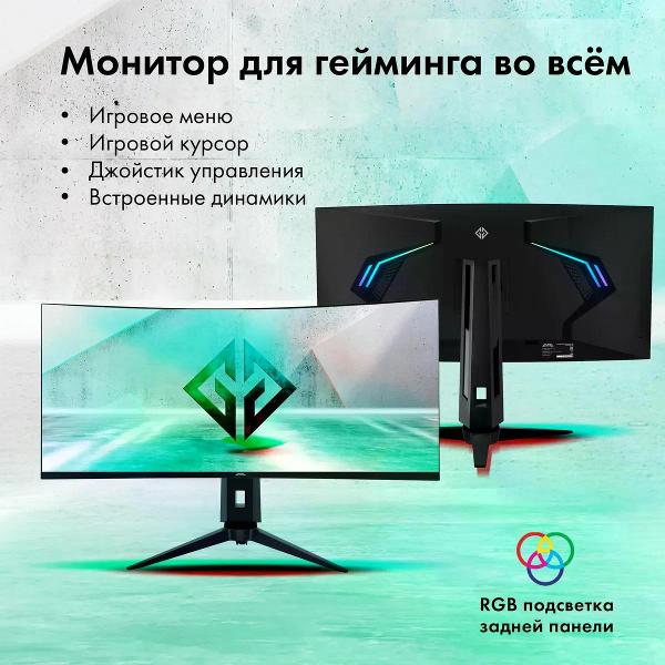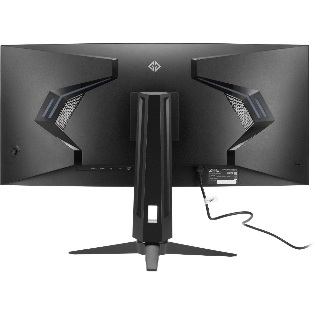 Монитор GMNG GM-34C11W черного цвета оснащен потребляемой мощностью 70 Вт. Изогнутый экран 21:9 с матовым покрытием допускает максимальный угол обзора по горизонтали и вертикали 178°. Диагональ составляет 34 дюйма. Разрешение 3440х1440 пикселей с обновлением 165 Гц и яркостью 300 кд/м² обеспечивает четкость изображения. Динамическая контрастность равна 1000000:1.