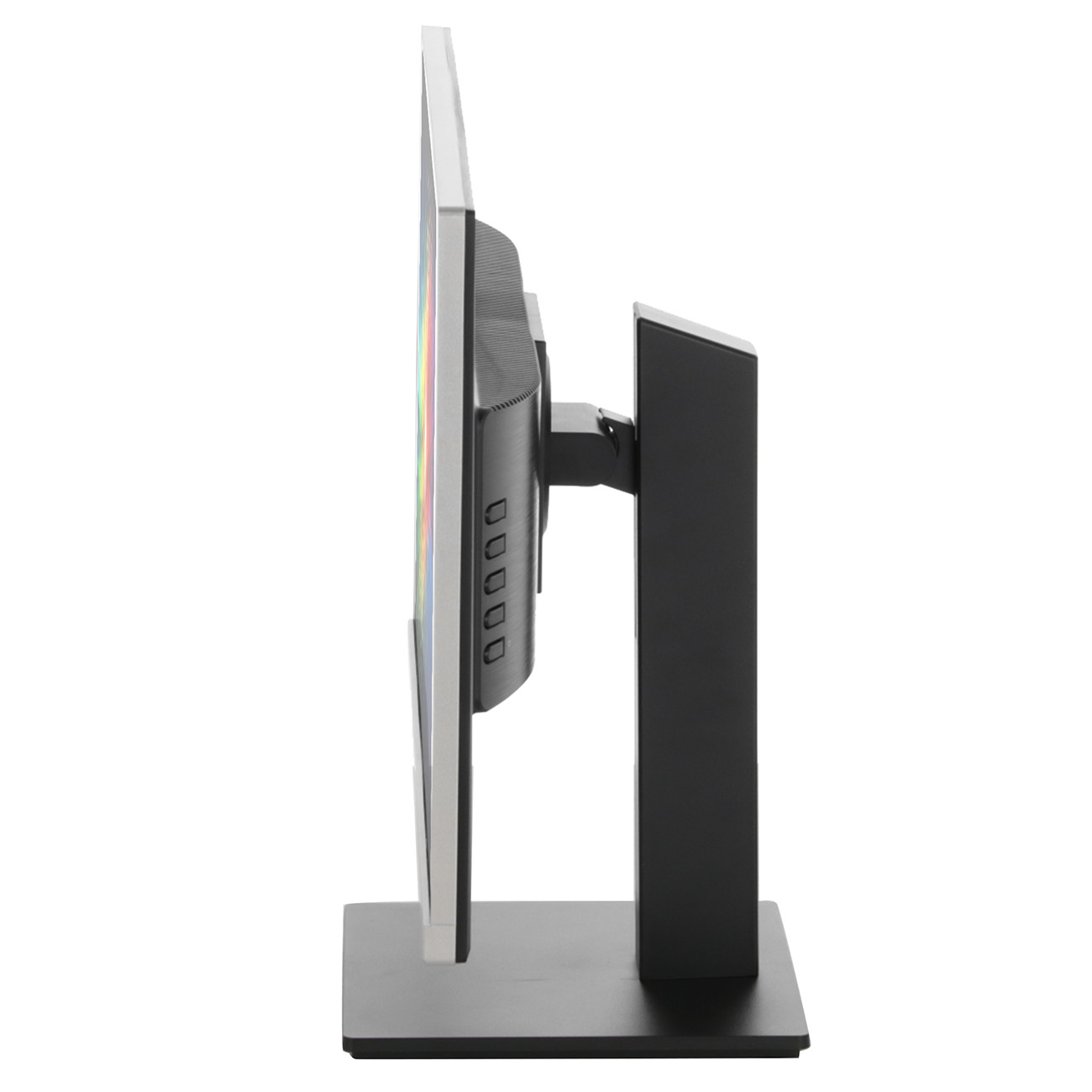 Монитор установлен на шарнирной подставке, позволяющей поворачивать и наклонять экран, а также регулировать его высоту и вращать вокруг своей оси. При желании вы можете закрепить его на стене с помощью кронштейна VESA.