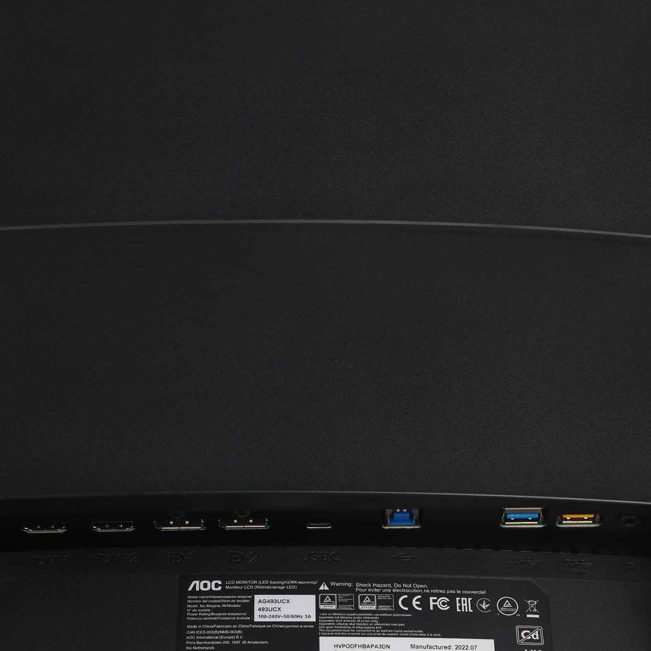Монитор игровой AOC AG493UCX 49 дюймов разработан для геймеров, стримеров, создателей графического контента. Широкоформатный безрамочный корпус объединяет два 27" QHD-дисплея на единой бесшовной панели с разрешением DQHD (5120х1440 пикселей). Для размещения прибора на столе предназначена металлическая подставка, в которой предусмотрено отверстие для вывода проводов. Поворотная конструкция опоры позволяет настраивать высоту и наклон экрана, поворачивать его на 15,5° в обе стороны.