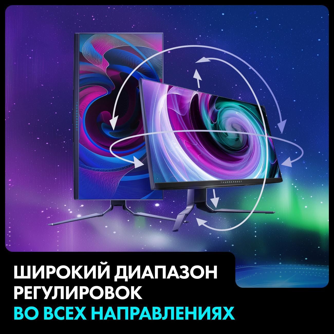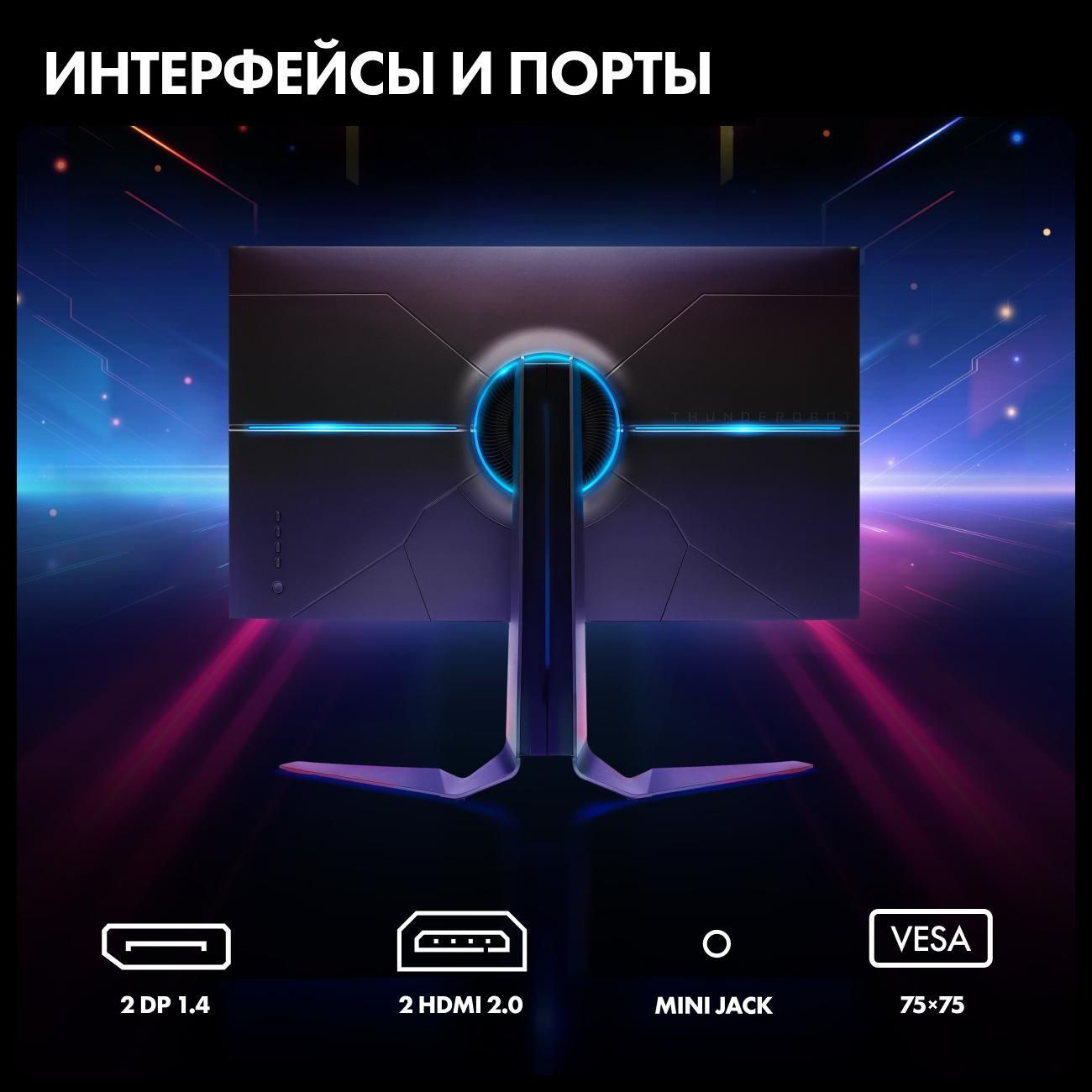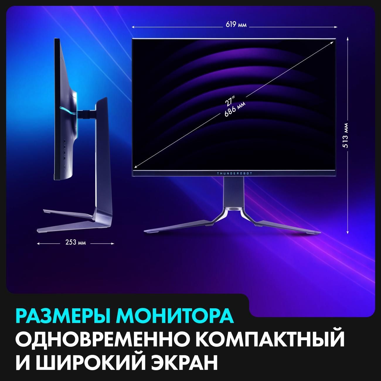 Игровой монитор Thunderobot LQ27F180L-Q JT00EG00JRU обладает экраном диагональю 27 дюймов. Показатель яркости соответствует 280 кд/м². Угол обзора 178° по вертикали и горизонтали позволяет смотреть контент с бокового ракурса. Время отклика устройства составляет 1 мс. В случае необходимости угол наклона монитора можно отрегулировать в диапазоне от -5°С до +15°С.