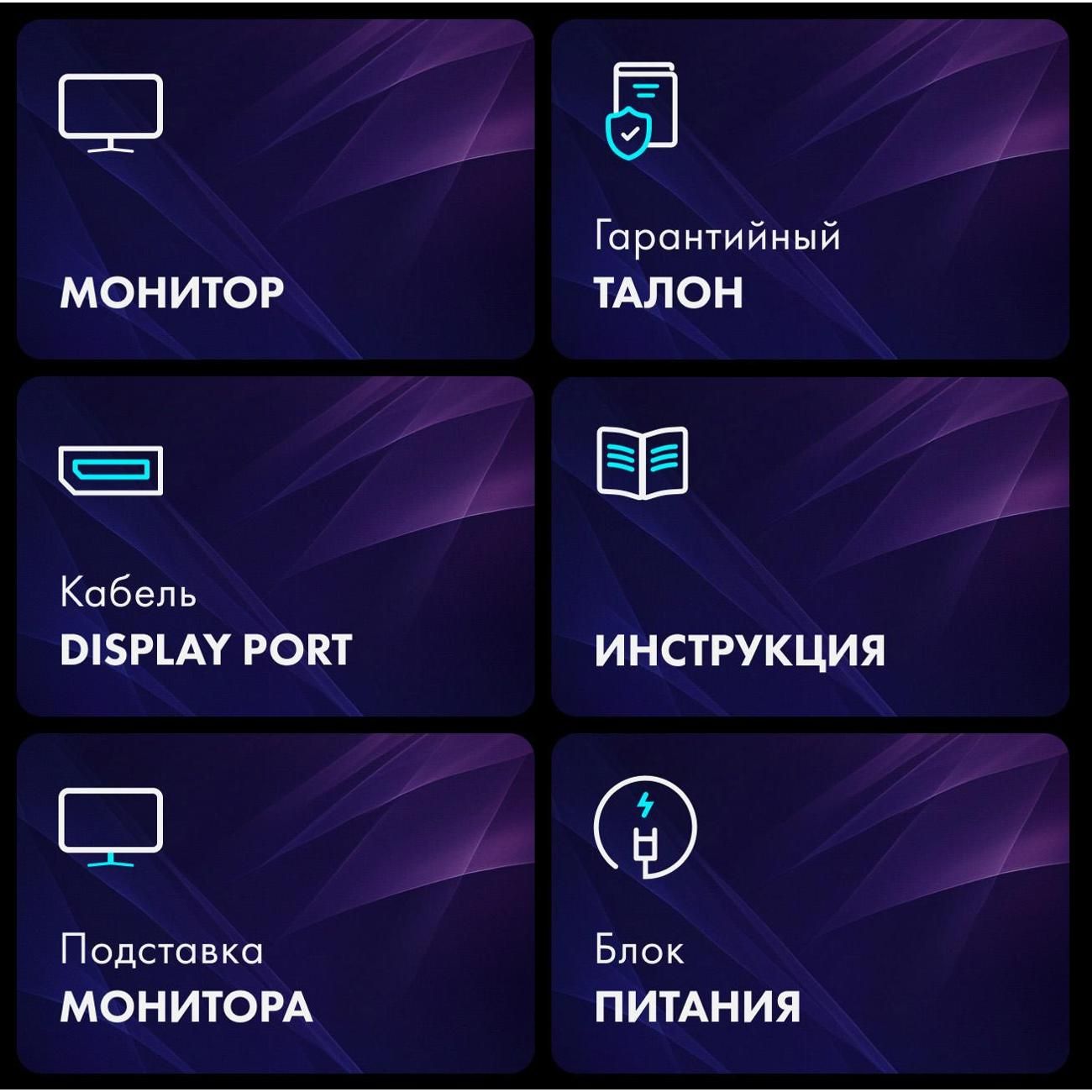 Подключение дополнительных устройств осуществляется с помощью разъемов DisplayPort, HDMI версии 2.0 и выхода для наушников. Максимальная потребляемая мощность монитора — 48 Вт, в спящем режиме — 0,5 Вт. В комплект входят подставка, кабель DisplayPort и блок питания.