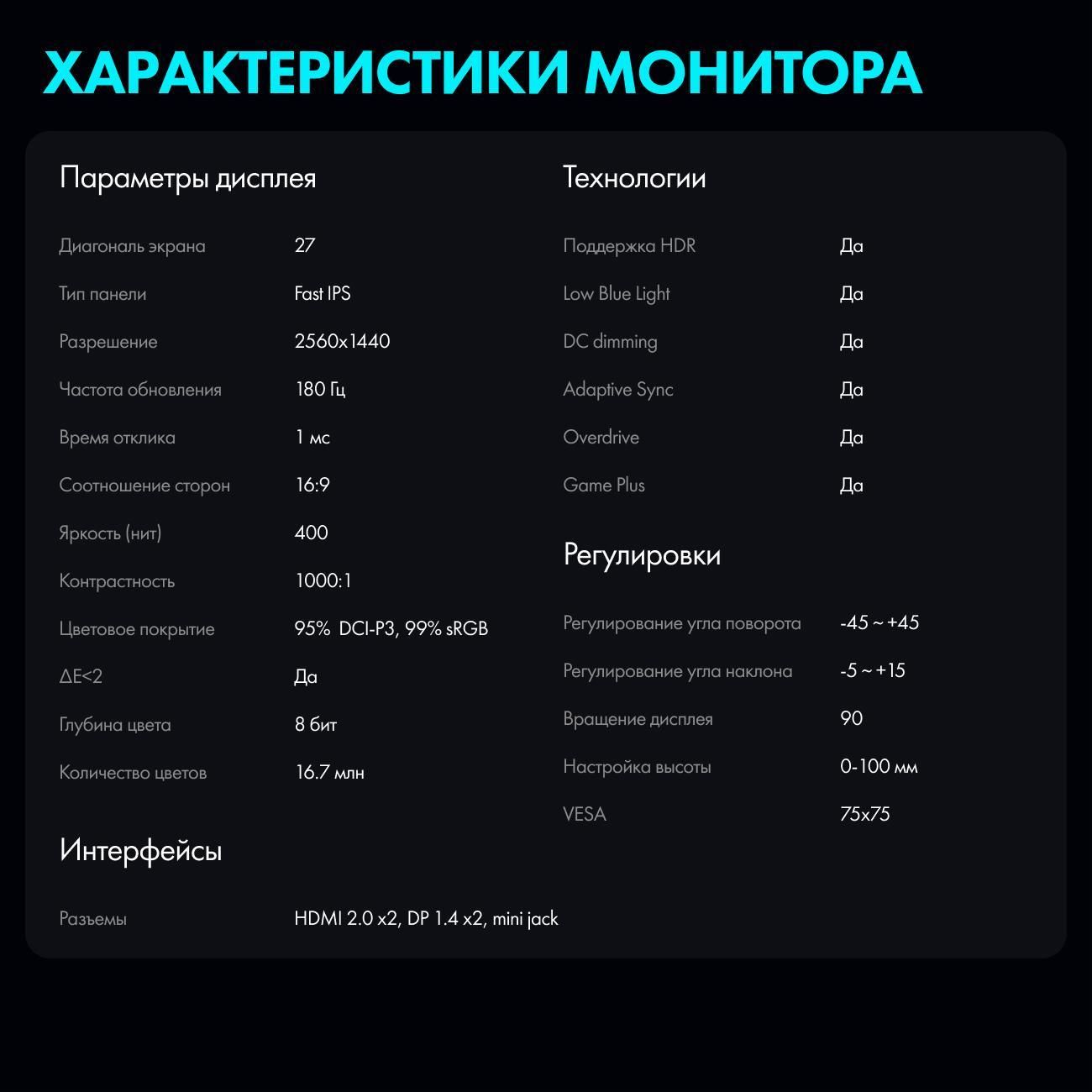 • Разрешение 2560х1440 пикселей