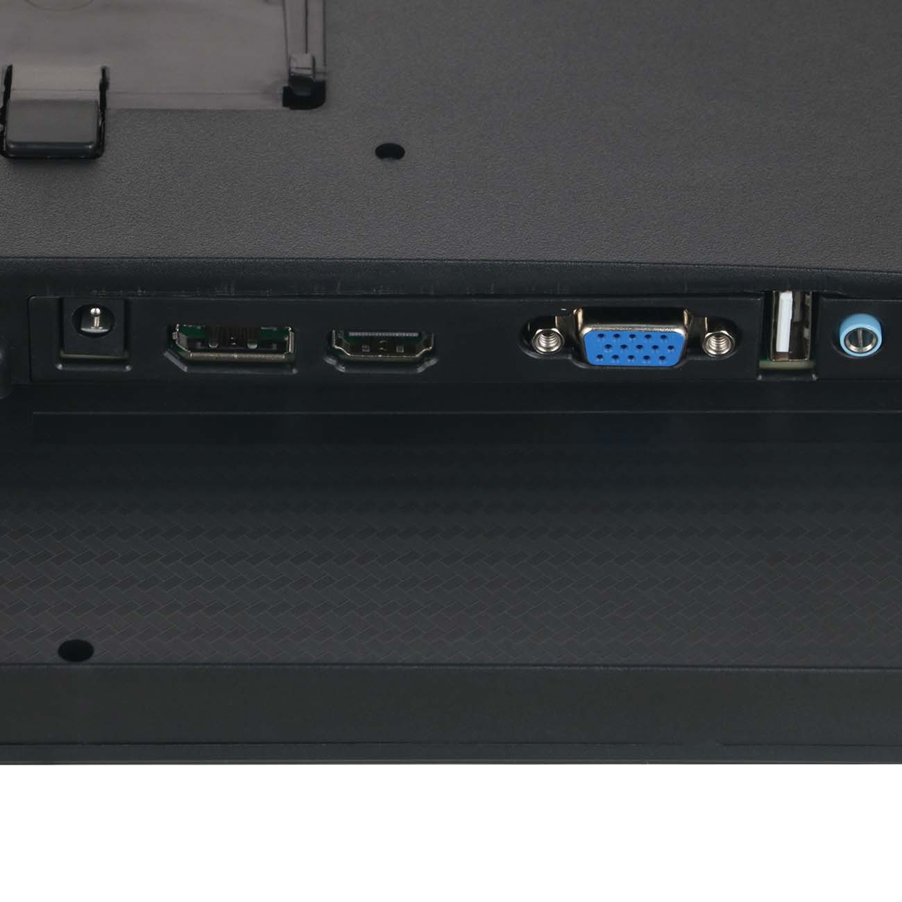 На тыльной стороне корпуса располагаются интерфейсы подключения: D-Sub, DisplayPort, HDMI и порт USB Type-A версии 2.0. Предусмотрена встроенная акустическая система.