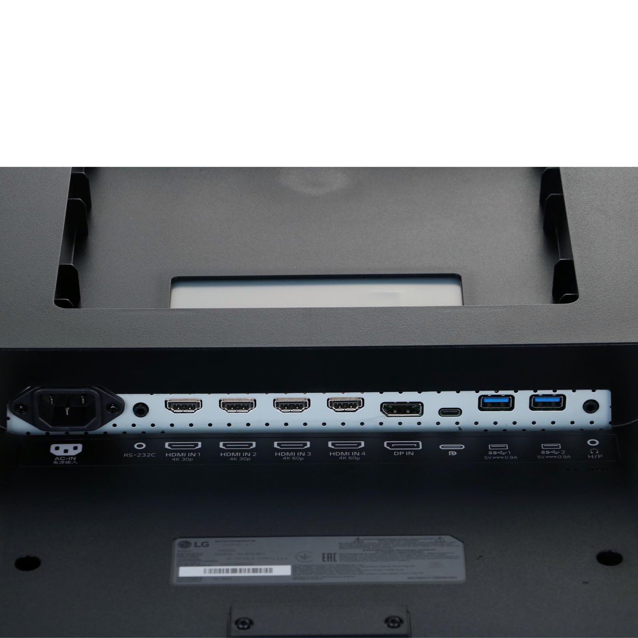 Модель отличается встроенной акустической системой. Установлено два скрытых динамика мощностью по 5 Вт с объемным звучанием Rich Bass. Прибор потребляет 200 Вт. Кабель питания входит в комплектацию. В корпус встроены интерфейсы 3,5 мм и DisplayPort, четыре разъема HDMI, два — USB 3.0 типа A и один — USB Type-С. Изделие монтируется за счет настенного крепления Vesa 200х200 мм. Доступно настольное размещение при использовании подставки с возможностью регулировки наклона. Габариты равны 64,76х96,7*27,5 см, вес — 17,5 кг.