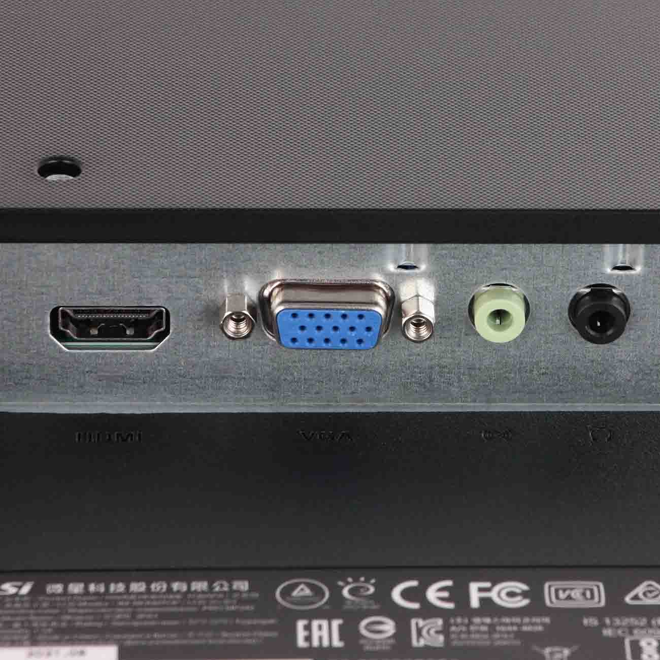 Настольная подставка входит в комплект. Она позволяет регулировать угол наклона в диапазоне от 5 до 23°. Допускается размещение модели на стене, для этого надо купить крепление типа VESA100. Для подключения к системному блоку есть интерфейсы D-Sub и HDMI, а также 3,5-миллиметровый разъем для проводных наушников.