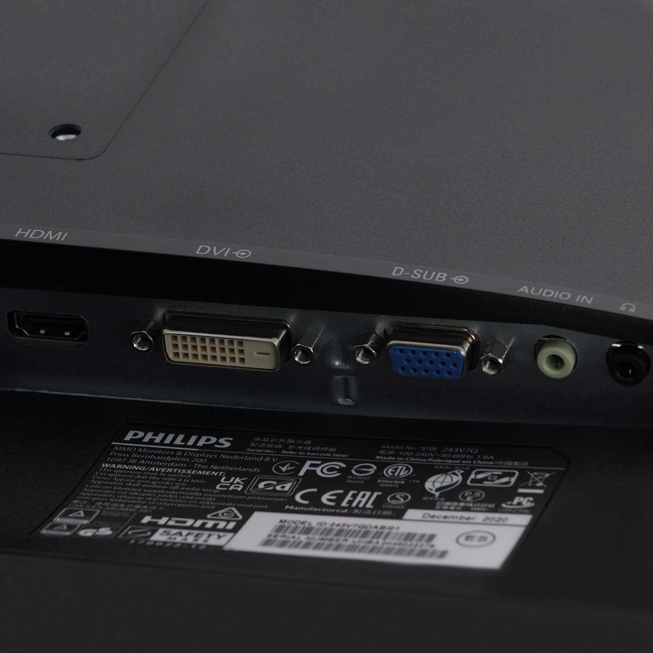 В комплекте с монитором поставляется устойчивая настольная подставка, а если хочется новых решений в интерьере, то просто повесьте Philips 243V7QDAB на стену с помощью кронштейна, приобретаемого отдельно. Для него предусмотрено стандартное VESA-крепление 100х100 мм.