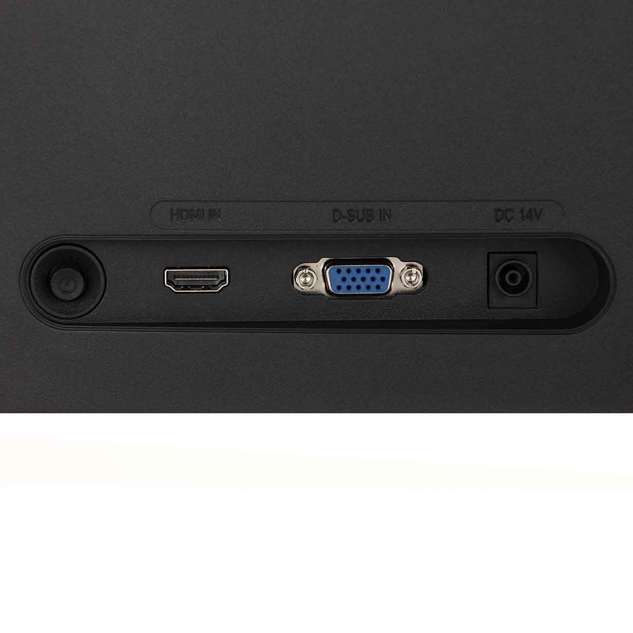 Для подсоединения к компьютеру прибор оснащён разъёмами D-Sub и HDMI. Подставка позволяет настраивать максимально удобный обзор экрана, наклоняя его в диапазоне от -2 до 22°. При желании можно повесить монитор на стену при помощи крепления VESA 75.