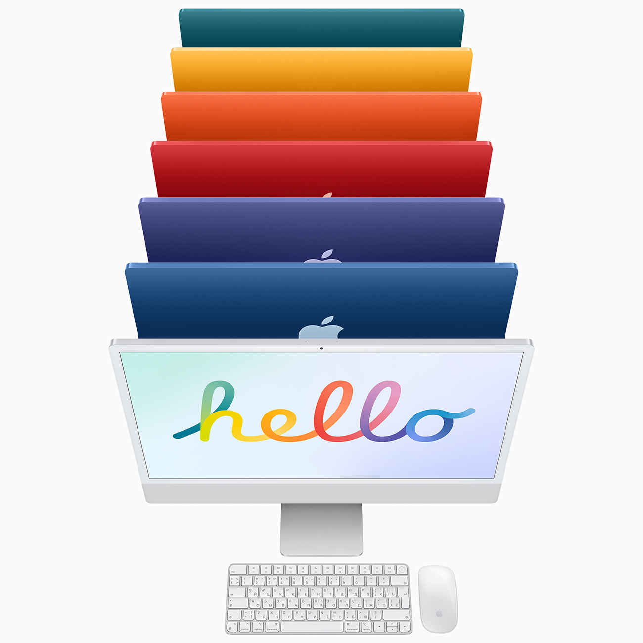 • Мышь Magic Mouse и клавиатура Magic Keyboard (или клавиатура Magic Keyboard с Touch ID)2 тех же цветов, что и iMac
