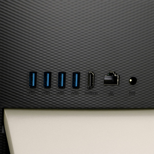 Клавиатура для печати - шумная. Но плюс, лично для меня, имеющееся расстояние между клавишами. Дизайн комплекта великолепен. Порты сзади ,я считаю, можно отнести к плюсам, т.к. не портят лицевую панель, либо стороны моноблока.