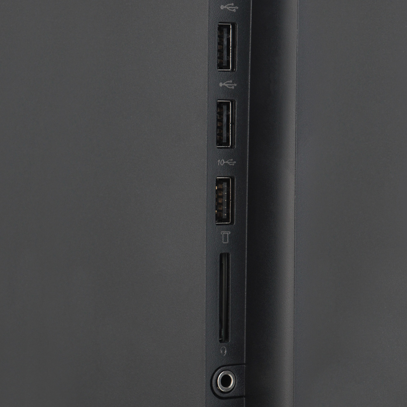 Штатная подставка с наклонным креплением снимается одним движением руки. Её можно заменить настольным или настенным кронштейном VESA. Специальная петелька в основании служит органайзером, защищающим кабели от спутывания.
