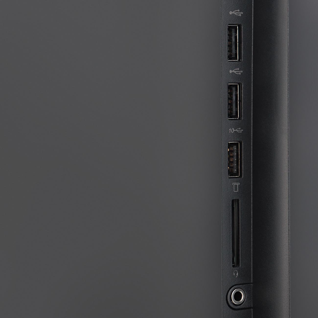 Штатная подставка с наклонным креплением снимается одним движением руки. Её можно заменить настольным или настенным кронштейном VESA. Специальная петелька в основании служит органайзером, защищающим кабели от спутывания.