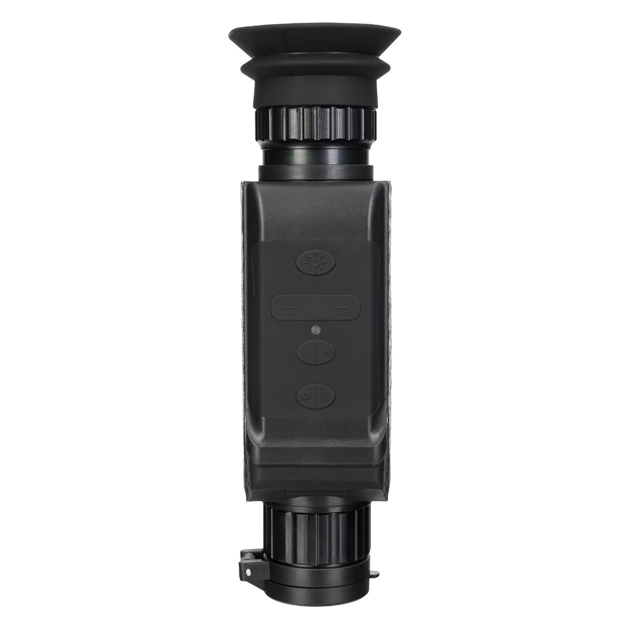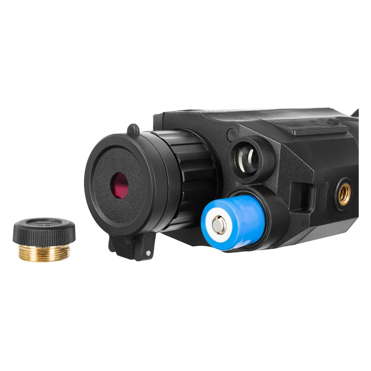 Аппарат подходит для дневного и ночного применения. Прибор оснащается встроенным видеорекордером. Предустанавливается линза выпуклого типа для увеличений картинки. Устройство снабжено ИК-подсветкой.